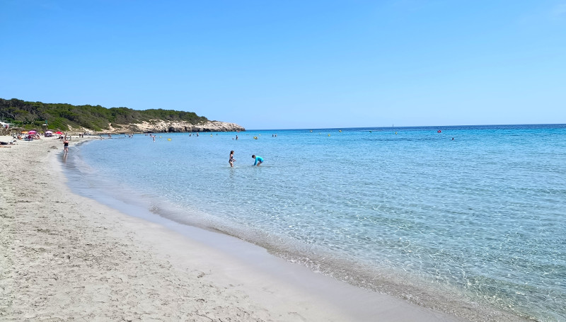 The northern coast offers a different, wilder kind of beauty. Here, the landscape is defined by dramatic red sandstone and rugged vegetation. Cala Pregonda is a standout, renowned for its unique reddish-gold sand, unusual rock formations, and shallow, warm waters that are ideal for wading. Nearby, the expansive Cavalleria Beach boasts sweeping dunes and a sense of remote, untouched splendor. Many boat tours also include a stop at the Illa d’en Colom, a small, uninhabited islet off the north coast that is home to a pristine sandy beach, offering complete seclusion and some of the clearest water for swimming on the entire island.