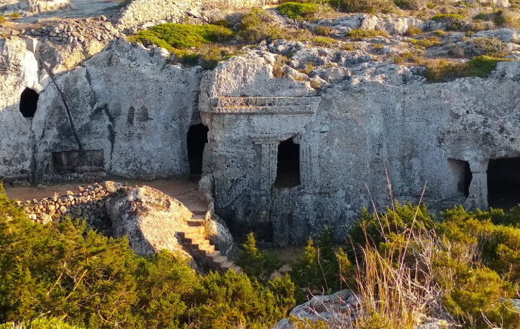 The feature that grants Cala Morell its unique archaeological importance is the Cala Morell Necropolis. This is not a single tomb but an extensive complex of fourteen artificial caves meticulously carved by hand into the soft limestone of the cliffs. Used as a collective burial site throughout the Bronze Age and into the Talayotic period, this prehistoric burial ground is one of the most significant and visually impressive of its kind in the Balearic Islands. The facades of some caves are architecturally refined, featuring carved motifs that mimic the architectural elements of the talayotic culture, such as false lintels and columns. Exploring the path that winds past these ancient tombs offers a profound and tangible connection to the spiritual beliefs and funerary practices of Menorca’s earliest inhabitants, providing an unforgettable glimpse into a distant past.